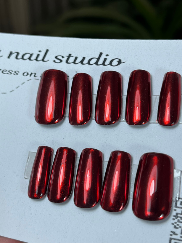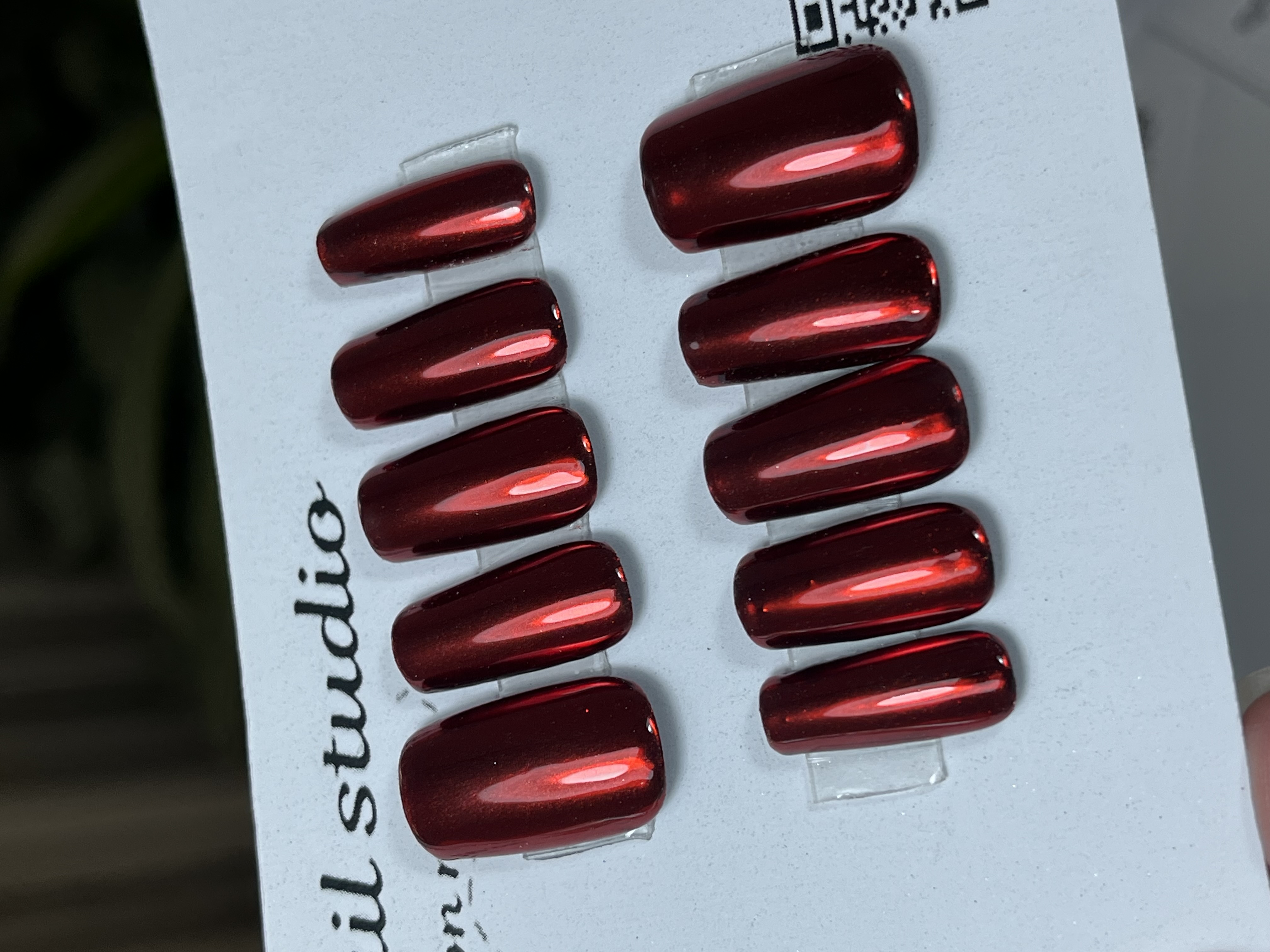 (سفارشی) کروم قرمز ناخن مصنوعی دستساز از جنس کاشت