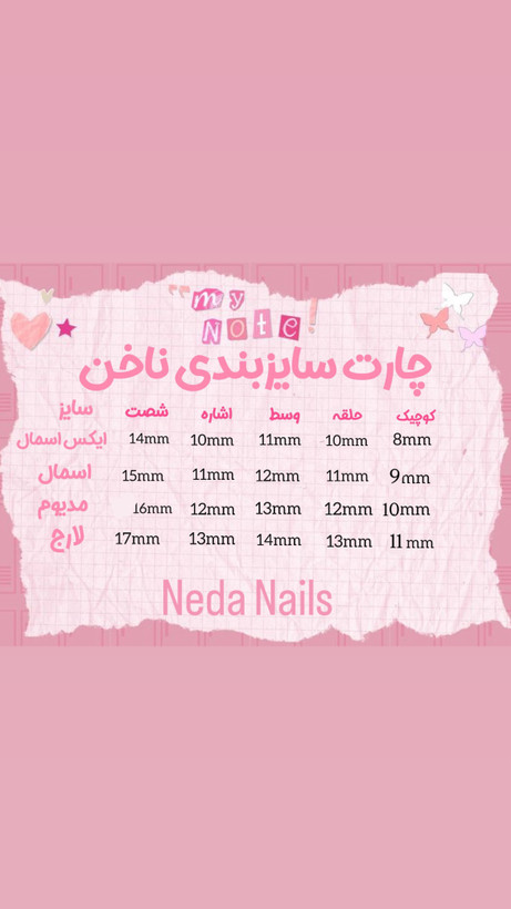 نحوه اندازه گیری سایز ناخن و سایز بندی ها داخل عکس ها هست و اگر سایز ناخنتون تفاوت داشت میتونید برام بفرستید تا برای شما بسازیم.